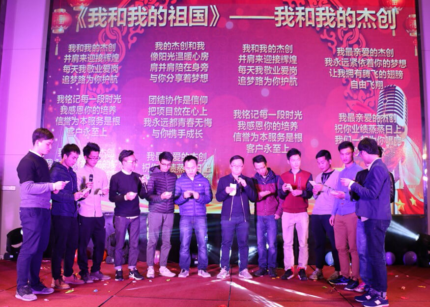 在度过三个小时的欢乐时光后,年会进入了尾声。全场人员齐齐进入演唱状态,伴随着优美的旋律,接连合唱了《相亲相爱一家人》、《同一首歌》、《朋友》三首歌曲。歌声飞扬,群情高涨,将现场气氛推向最高潮。大家放开歌喉,大声唱出心底的心声,尽情表达出对今年会、对他人的祝福和感恩。所有人的歌声交织在一起,彼此的心灵也在密切地交流。在响亮动听的大合唱中,今年会智能2016年度总结表彰大会暨2017迎新年会圆满落下了帷幕。